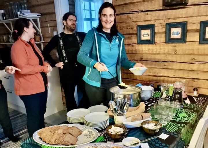 Enjoy an authentic Lappish wild food lunch in a cozy farmhouse setting, featuring: